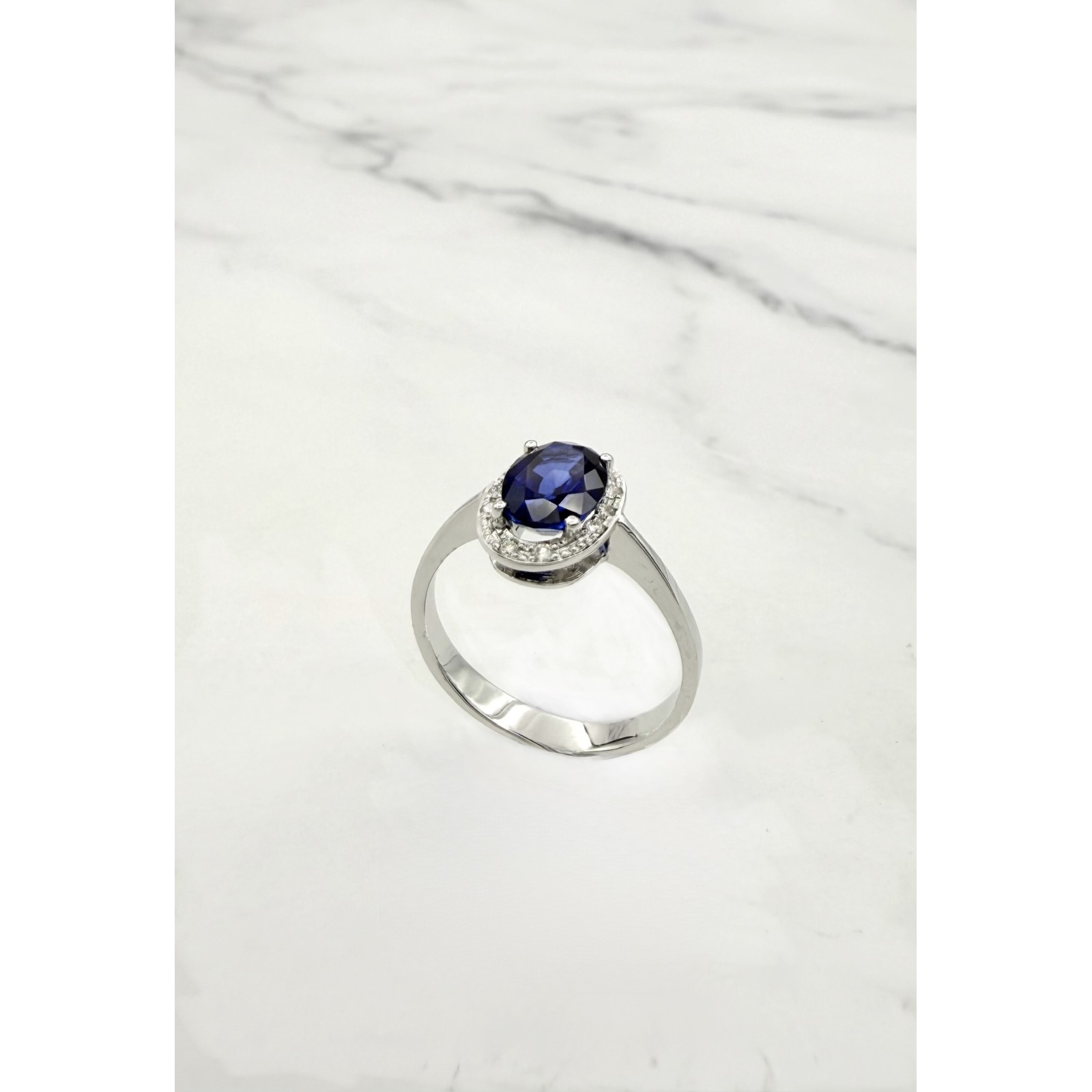 Anillo oro blanco zafiro y diamantes