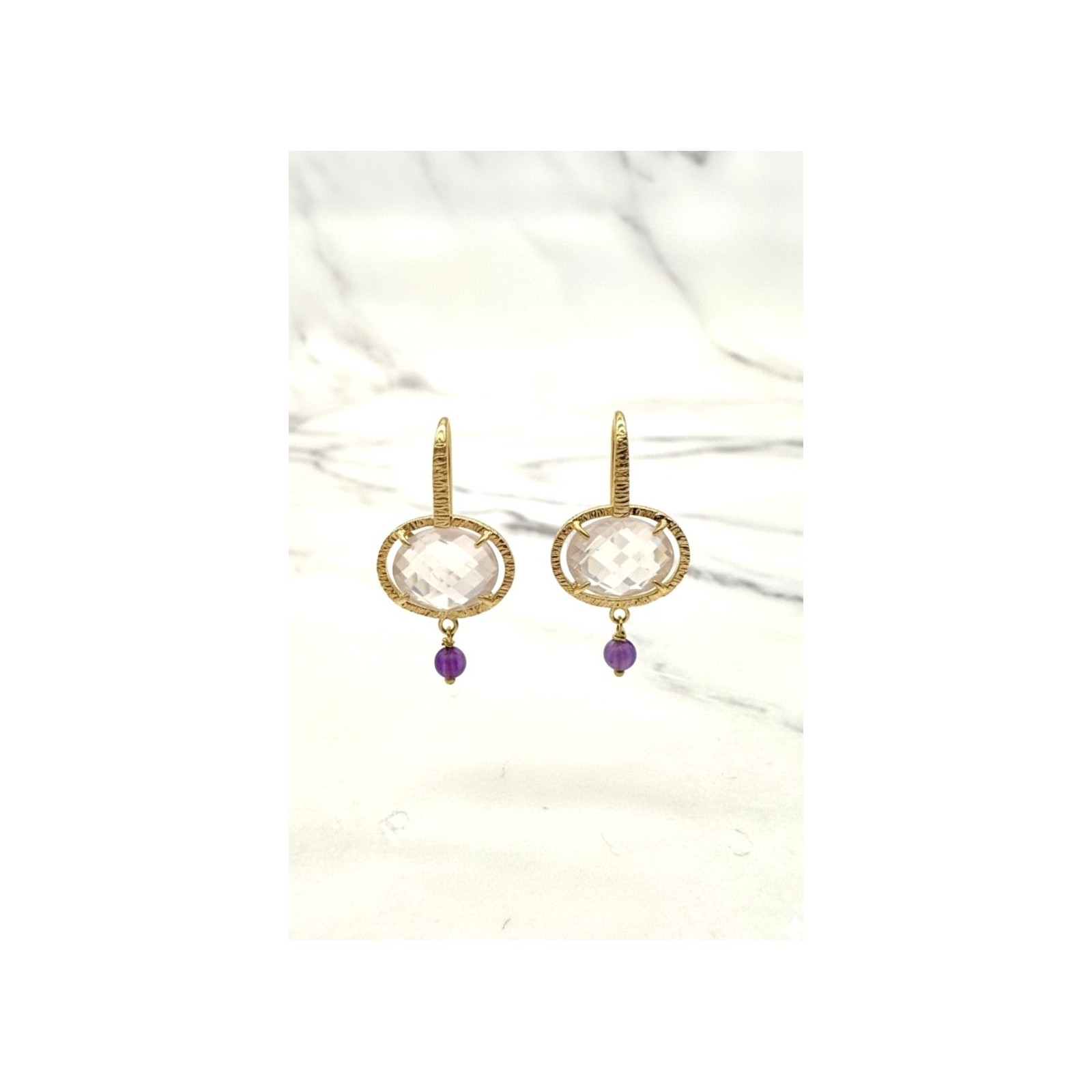 Pendientes colgantes cuarzos y oro rosa
