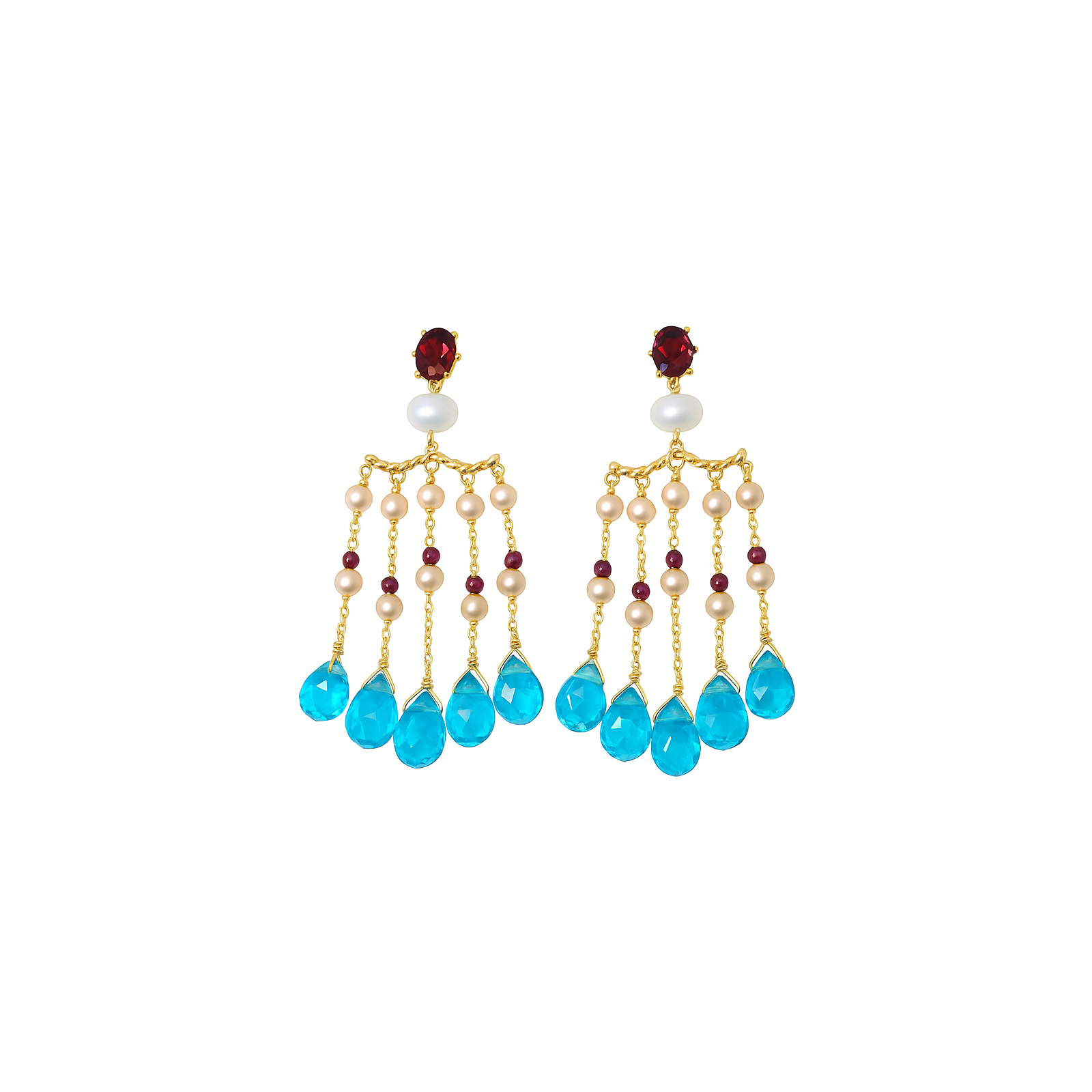 Pendientes colgantes oro perlas y gemas azules