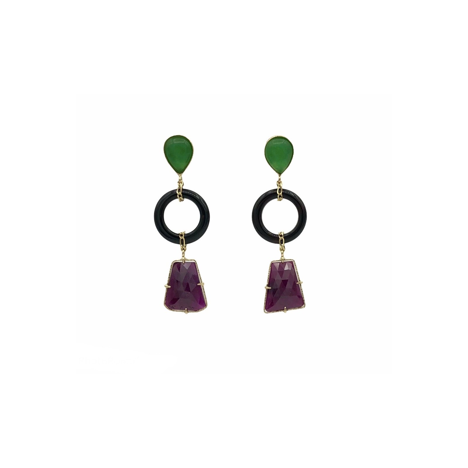 Pendientes oro rubis, jades y onix
